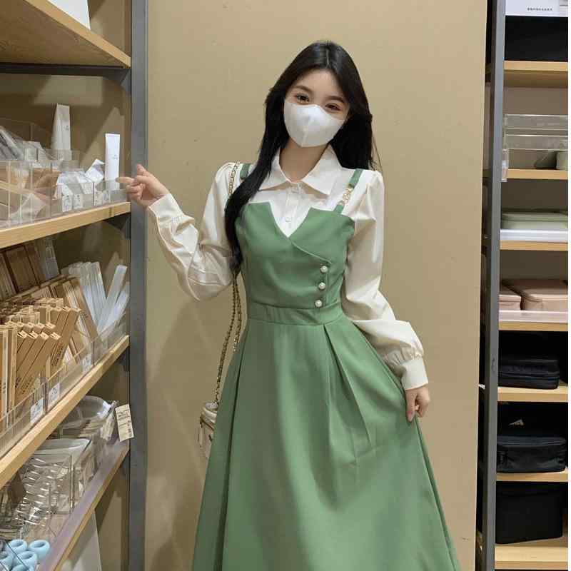 ワンピース レディース Aライン ポリエステル ロング丈 2024年 グリーン フェミニン ガーリー 秋