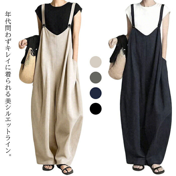 レディース サルエルパンツ オーバーオール サロペット ロングパンツ ゆったり カジュアル ファッション 体型カバー 春 夏 秋 30代 40代 20代
