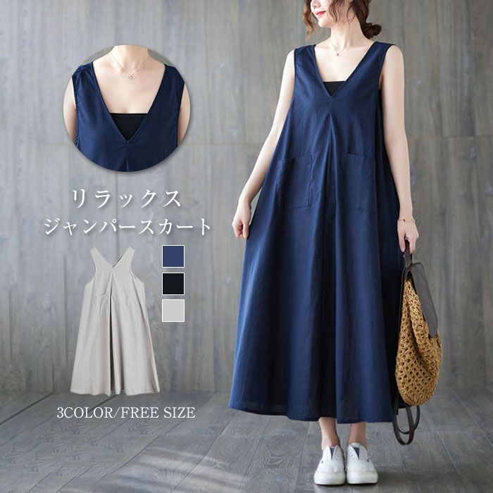 ロングワン 綿麻 ガーゼ キャミワンピ ゆったり ジャンスカ 重ね着 レディース ワンピース ジャンパースカート キャミワンピース