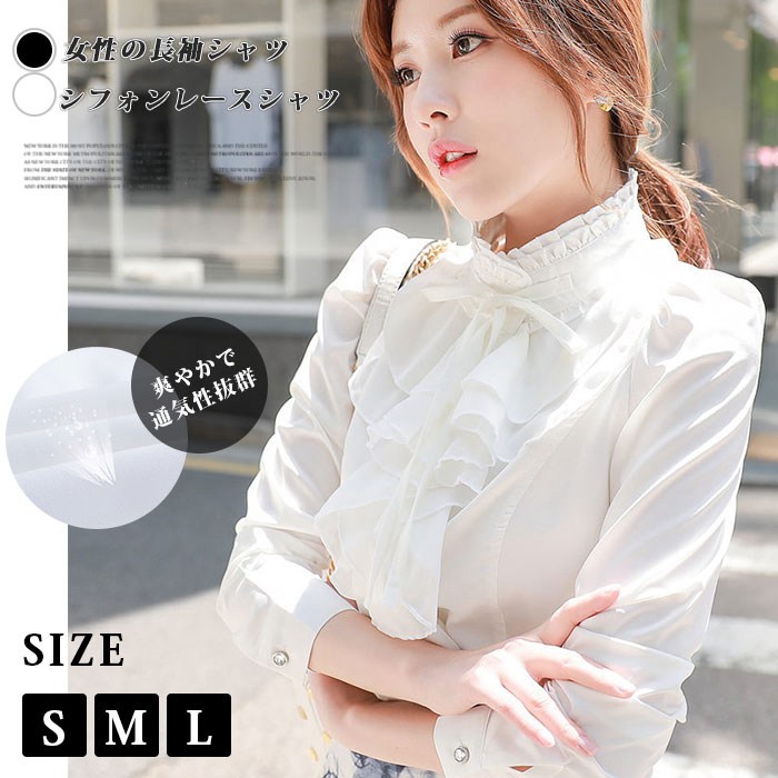 レディース ブラウス フリルシャツ 立ち襟 長袖 オフィス ビジネス 卒業式 入学式 ママ 代 30 40 20