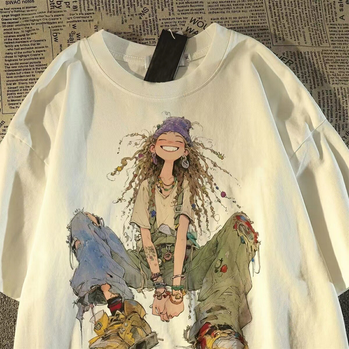 半袖tシャツ レディース トップス 半袖 tシャツ カットソー 薄手 イラスト プリント 丸首 カジュアル プリントtシャツ ゆるカットソー おしゃれ 可愛い かわいい おしゃれtシャツ 白 黒 夏