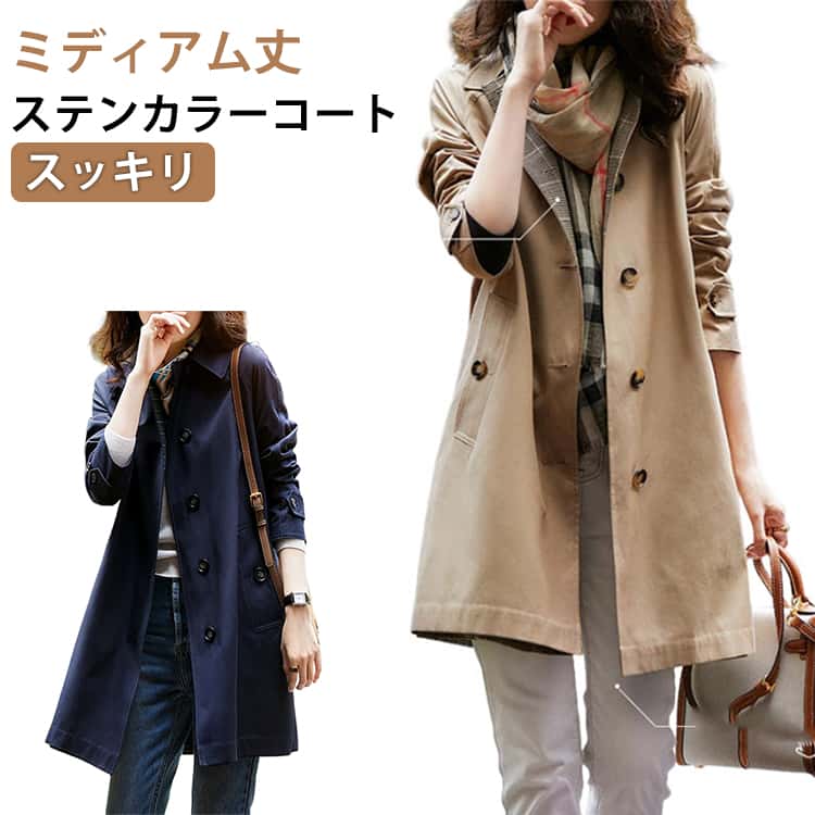 秋 春 トレンチコート ライトアウター ミディアム スプリングコート アウター ステンカラーコート 春コート 大きいサイズ シンプル 無地 きれいめ カジュアル ゆったり 体 上品