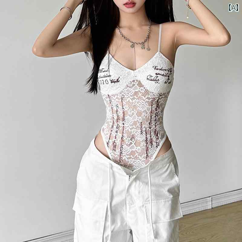 ボディスーツ レディース ファッション ホットガール 魅惑的 背中が開いた レース ステッチ タイト セクシー トップス Vネック ノースリーブ ジャンプスーツ アメリカ