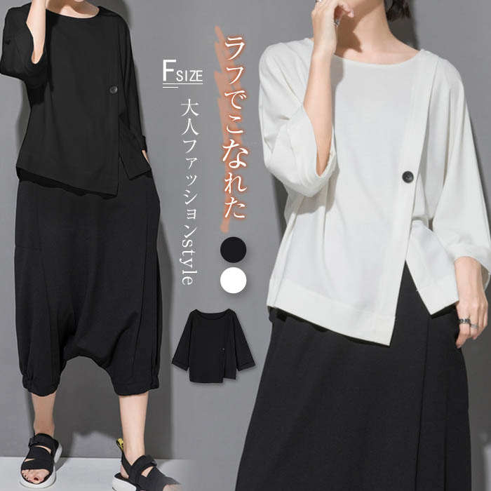 tシャツ レディース 7分袖 おしゃれ アシンメトリー ショート丈 カットソー 春 夏 秋 冬 ドルマンスリーブ 切り替え シンプル トップス 無地 デザイン 個性 プルオーバー