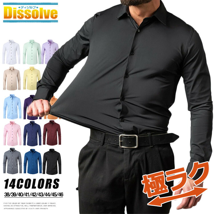 ワイシャツ メンズ 長袖 ビジネス 無地シャツ トップス 伸縮 極ラクの着心地 ストレッチ 長袖シャツ 紳士服 カジュアルシャツ パーティー 父の日 プレゼント 結婚式