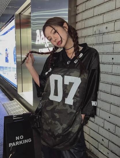 ユニフォーム風メッシュロゴナンバー半袖五分袖 トップスカットソーtシャツロゴベースボールスポーツダンス衣装ヒップホップレディースメンズガールズストリートスケーター