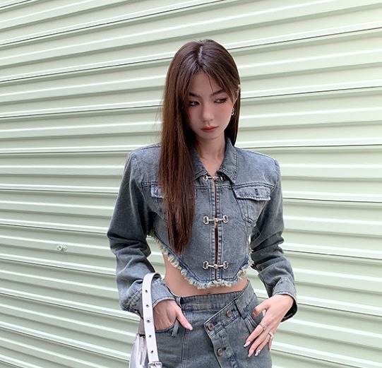 ジャケット コート 長袖 ショート丈 切り替え スリム デニム sweet系 原宿系ファッション 韓国風ダンス 衣装 ヒップホップ HIPHOP 個性 奇抜 青文字系 アウター トッ かわいい