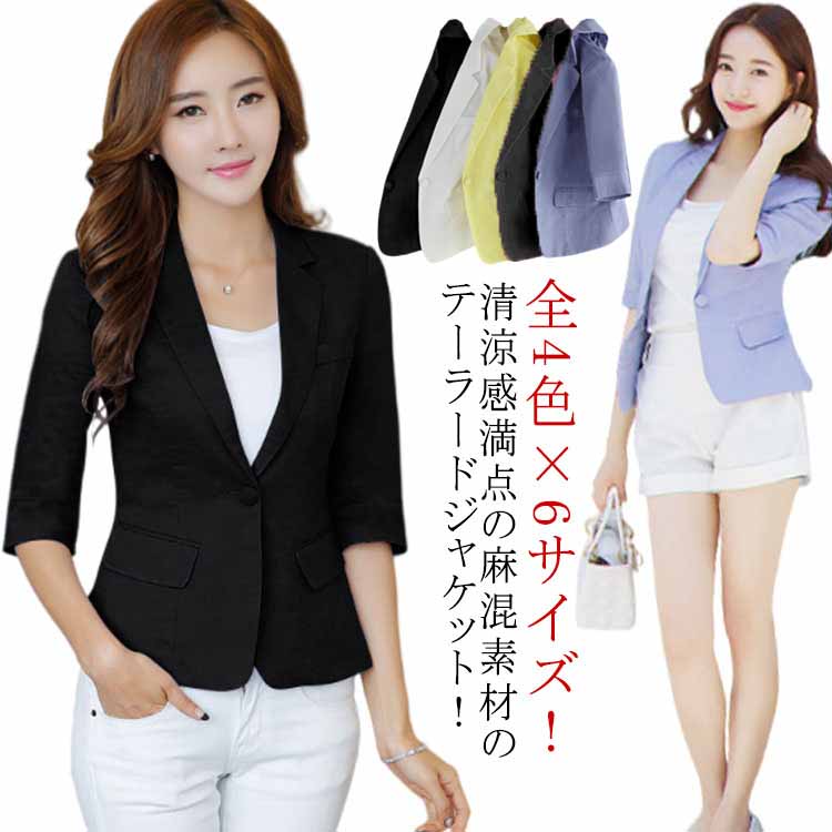 S-3XLサイズ サマージャケット 7分袖 テーラードジャケット レディース スリム 綿麻 テーラード ジャケット リネン ショート丈 レディースジャケット カジュアルジャケット オフ 薄手ジャケット