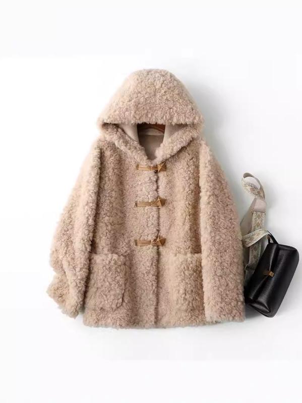コート レディース 冬用 ラムファー 皮毛一体 フード付き ゆったり ショート丈 羊毛 暖か 軽量 毛皮風 剪毛加工