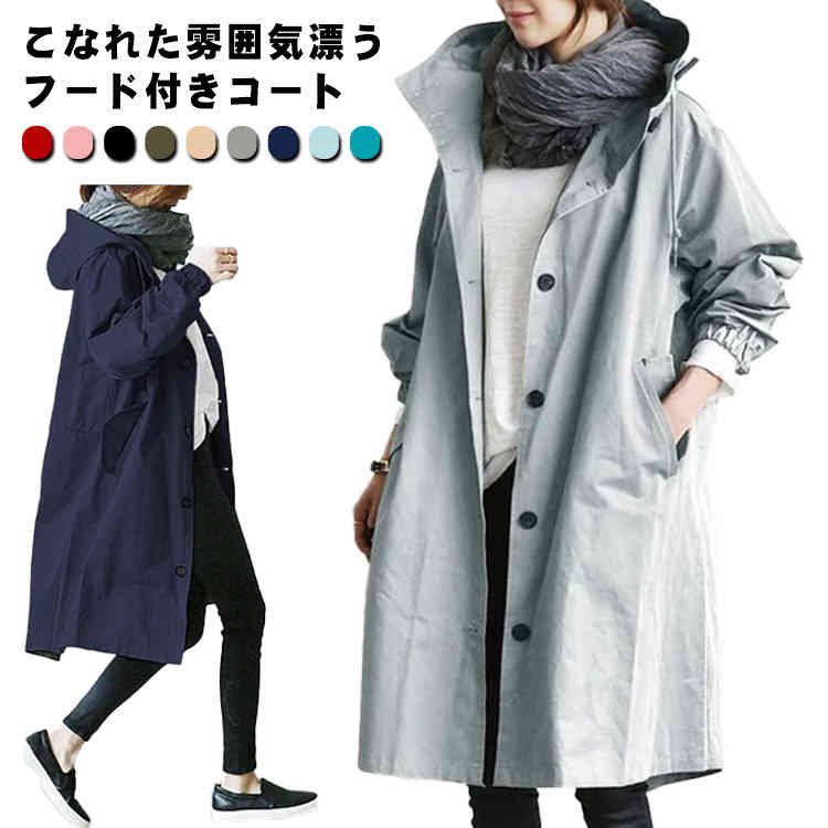 羽織り 秋 通勤 軽量 ボタン 無地 カジュアル コート 裏地あり トレンチコート アウター おしゃれ 薄手 レディース フード付き