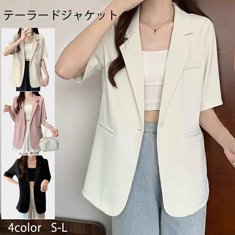 サマージャケット 半袖 ジャケット レディース 薄手 アウター カジュアル ライトアウター スーツ 夏 体型カバー オフィスカジュアル ビジネス サマースーツ テーラードジャケット 無地 フォーマル