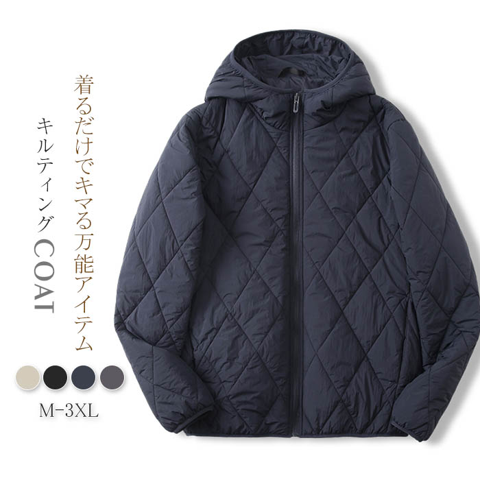 キルティング 中綿 コート アウター ジャケット レディース メンズ ブルゾン 中綿コート 秋冬 フード フェイクダウン 暖か 防寒 厚手 冬 大きいサイズ ゆったり ファスナー ジ ミドル丈