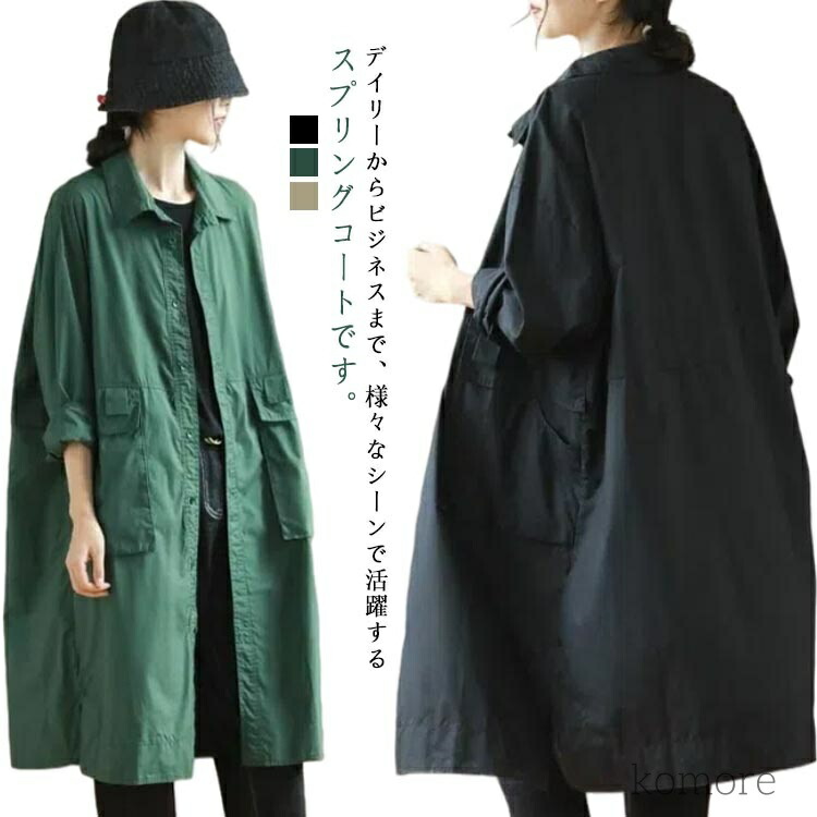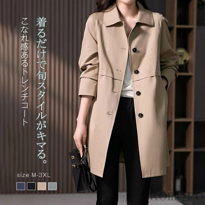 秋 春 トレンチコート ライトアウター ミディアム スプリングコート アウター ステンカラーコート 春コート 大きいサイズ シンプル 無地 きれいめ カジュアル ゆったり 体 上品