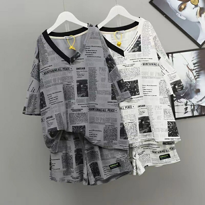 上下セット セットアップ レディース 大きいサイズ 夏 Tシャツ+ショートパンツ 2点セット レディースセットアップ セットアップ上下 サマーセットアップ 総柄 夏物 スポーツウェア 半袖 vネック