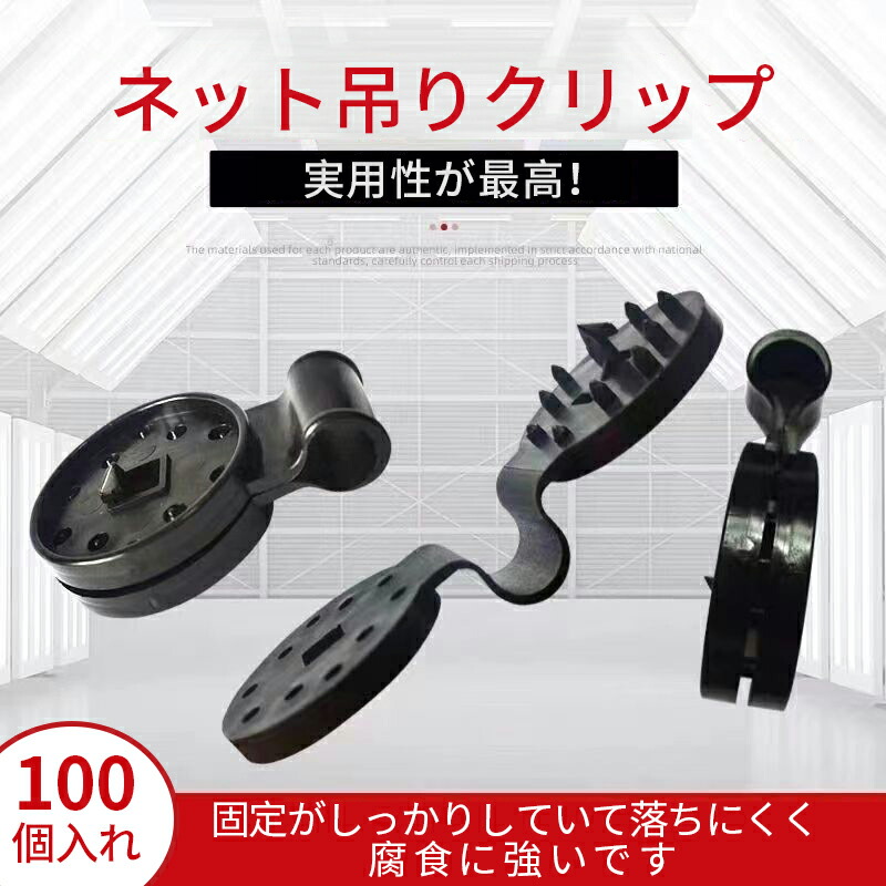 落ちにくい ネット吊りクリップ 100個入 遮光ネット 防虫ネット 防鳥ネット 防虫ネット吊り紐に引っ掛けるためのクリップ しっかり固定可能 防風ネット