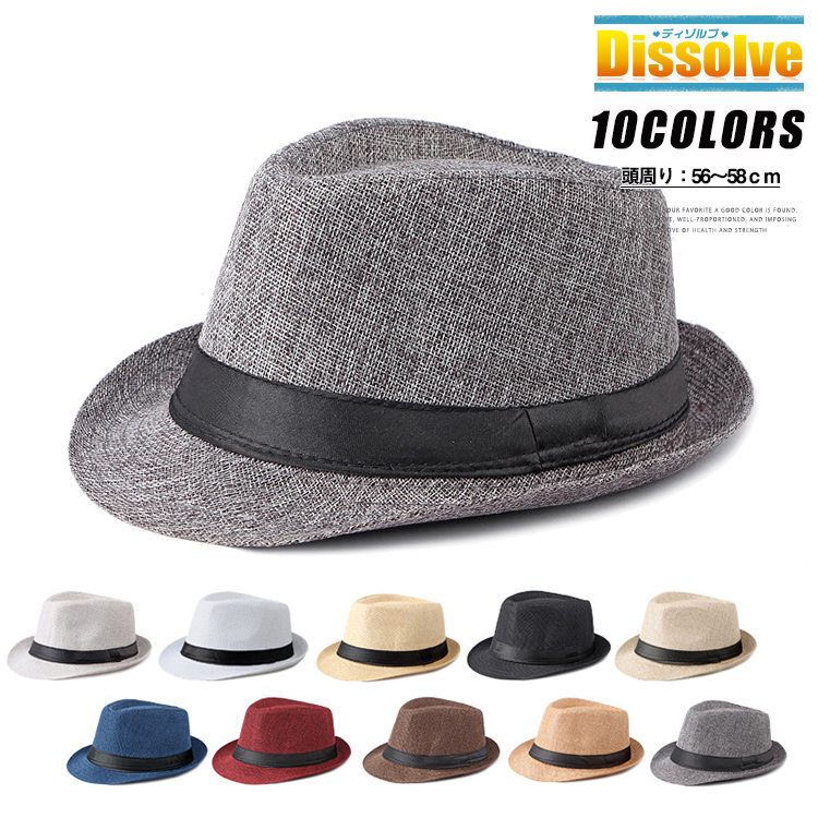 帽子 メンズ ハット 中折れハット 無地 中折れ帽 UVカット おしゃれ 紳士帽子 フリーサイズ 綿麻風 hat 紳士用 父の日 プレゼント 紫外線対策 メンズ帽子 40代 50代 60代 30代