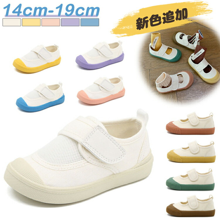 脱ぎ履きがしやすい子ども用上履き 無地 ホワイト ブルー ピンク ムラサキ イエロー14-20