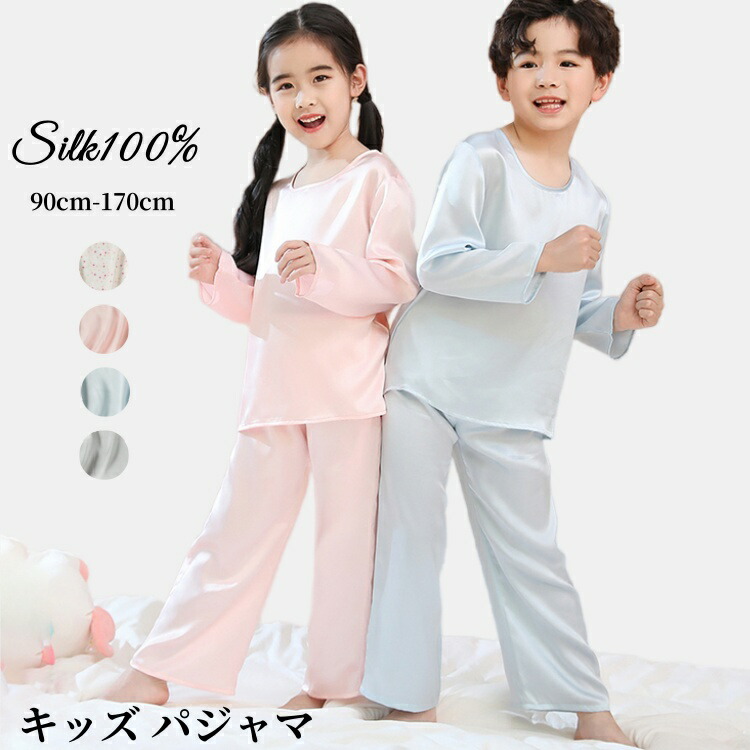 シルク100% キッズ パジャマ セットアップ 子供 ジュニア 女の子 男の子 無地 長袖Tシャツ 長ズボン 男女兼用 ロングパンツ 保湿 敏感肌 絹衣 ゆったり カジュアルパンツ 寝汗吸 上下セット