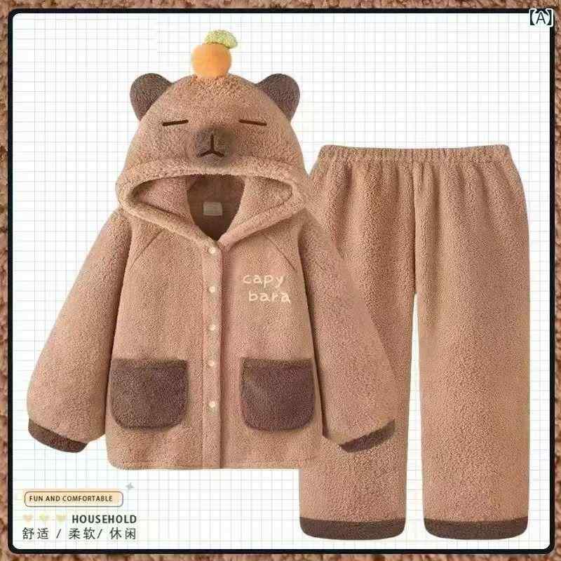 レディース ルームウェア パジャマ セット 秋冬 保温 コーラルフリース 厚手 かわいい カートゥーン柄 フード付き 外出対応 暖か 部屋着 ホームファッション 柔らかい