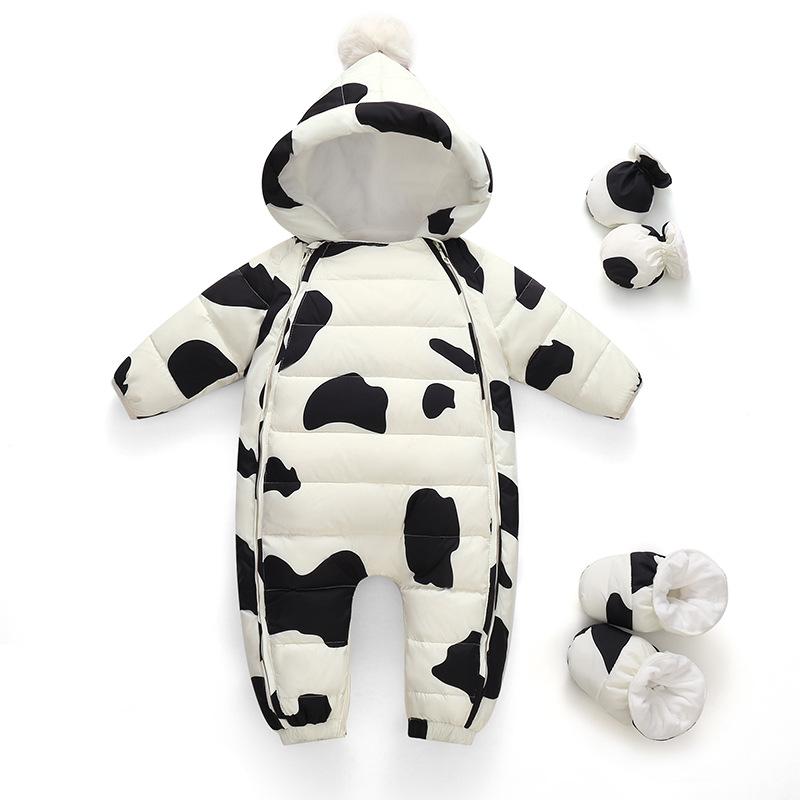 ダウンロンパース ベビー 新生児 男女兼用 厚手 裏起毛 キャラクター フード付き ファスナー 長袖 ゆったり 柔らかな肌触り ホワイトダックダウン ポリエステル お出かけ 抱っこカバーオール 黒 冬