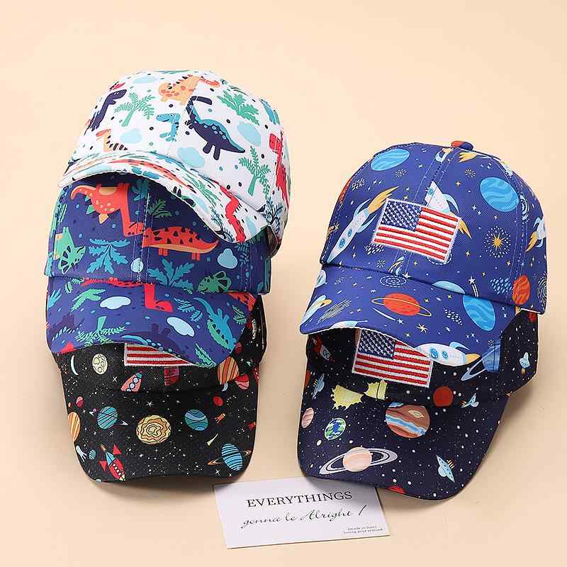 帽子 男の子 キッズ 子供用 コットン 欧米風 かわいい カートゥーンプリント アメリカ国旗柄 ベースボールキャップ 春夏 UVカット 熱中症対策 アウトドア 普段使い 日よけ