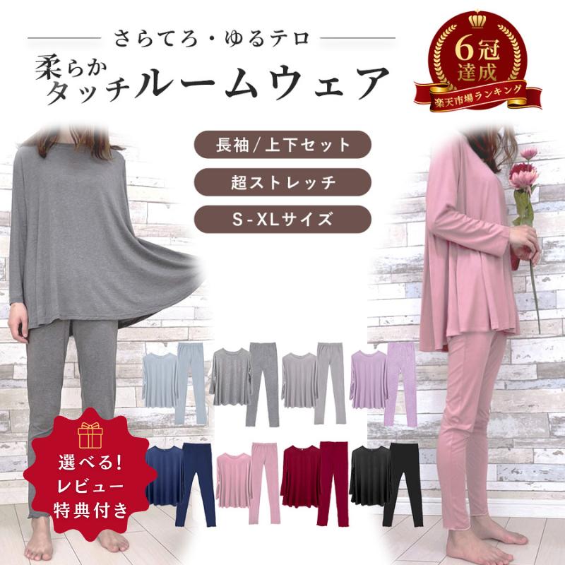 ルームウェア レディース 秋 さらてろ ゆるテロ 長袖 上下セット セットアップ パジャマ 部屋着 寝間着 長ズボン 夏 オールシーズン リラックス 大人可愛い シンプル 無地 カットソ プレゼント