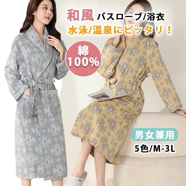 ガーゼコットン バスローブ がーぜ レディース メンズ 綿100% 厚手 寝間着 部屋着 ルームウェア パジャマ 和風パジャマ 浴衣 花柄 ガーゼ地 タオル地 風呂 水泳 スイミング ナイトガウ 温泉