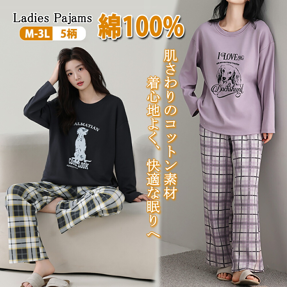 パジャマ レディース 春 夏 綿100% ルームウェア 部屋着 ホームウェア セットアップ 半袖 長袖 カップ付き 上下セット 秋 冬 修 ゆったり
