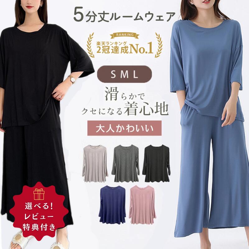 ルームウェア 上下セット レディース 5分丈 涼しい 春 夏 秋 ワイドパンツ リラックス カジュアル 部屋着 パジャマ セットアップ 体型カバー 大人可愛い ウエストゴム 快適 S M ゆったり