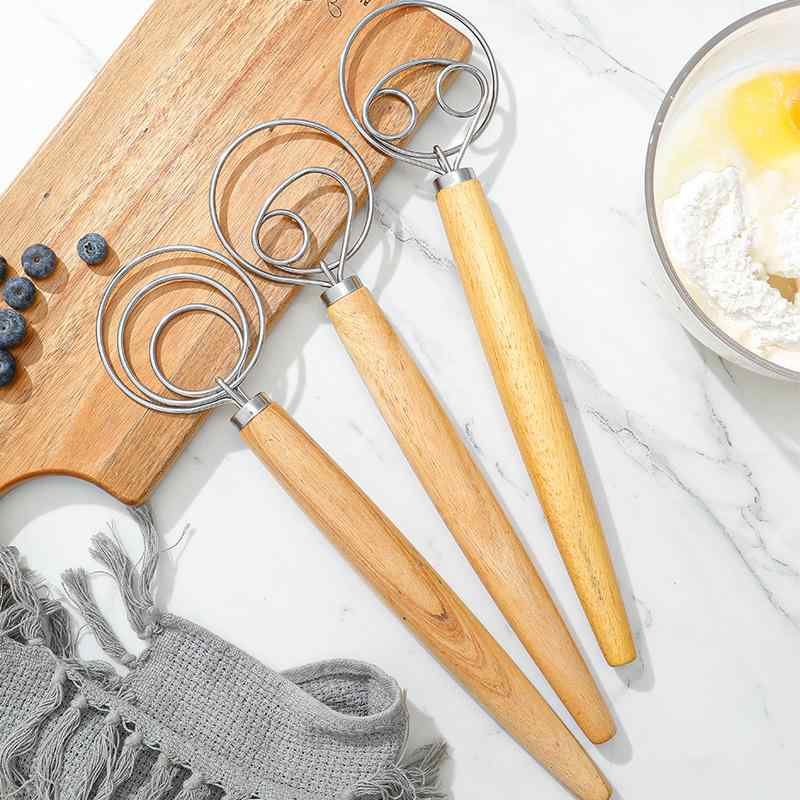 泡立て器 手動 ステンレス製 ホイッパー 粉混ぜ器 オーク材ハンドル シングルリング ダブルリング 家庭用 お菓子作り パン作り キッチンツール 製菓用品