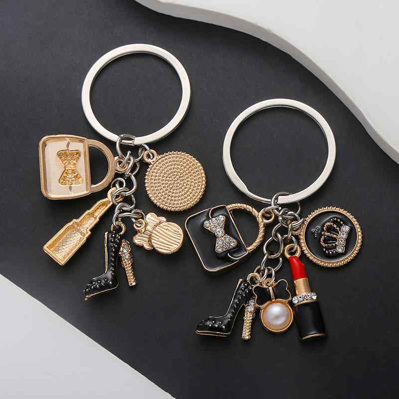 キーホルダー 小さい リボン ハンドバッグ 口紅 パウダープレート 花 アクセサリー チャーム ペンダント ゴールド