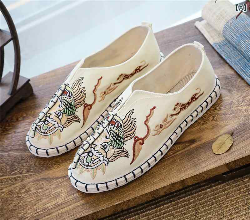スリッポン メンズ 男性用 春夏 中華風 伝統布靴 布製シューズ 帆布 千層底 刺繍 ソフトソール 快適 軽量 通気性 柔らかい履き心地 ラウンドトゥ ローヒール レジャー カジュアル お洒 普段使い