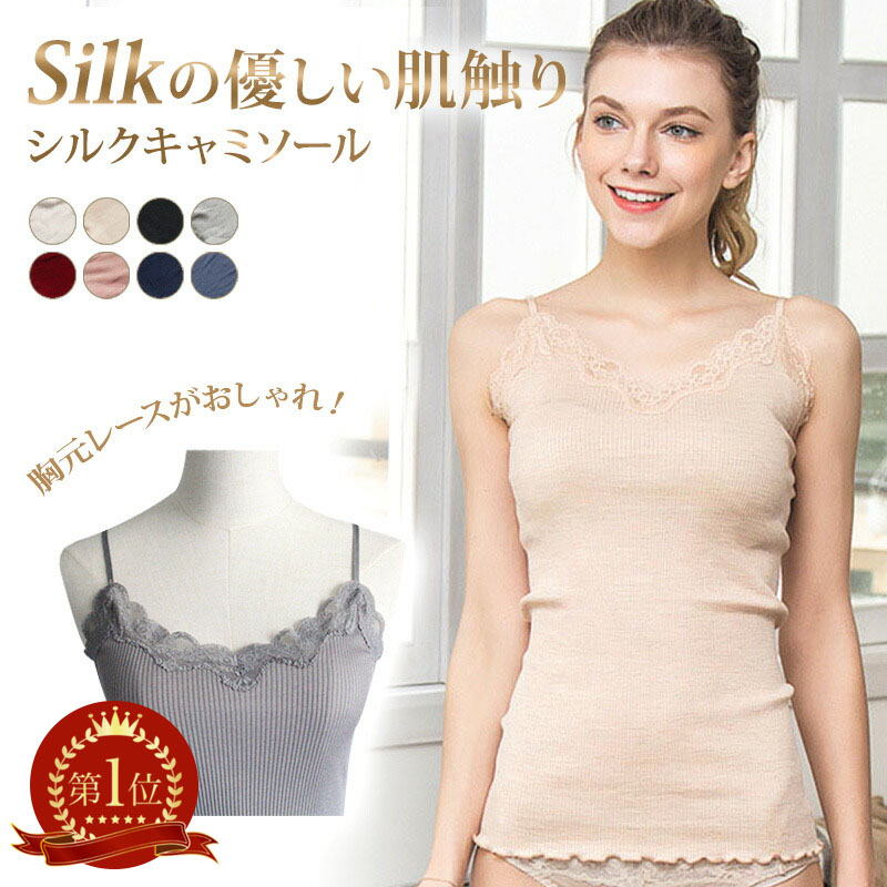 シルク キャミソール 絹 レディース タンクトップ インナー レース トップス ノースリーブ セクシー エレガント ルームウェア 部屋着 かわいい 汗取り 快適 女性 ゆったり 保湿 敏感肌 通 美肌