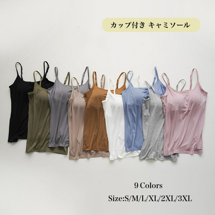 ブラトップ キャミソール ブラキャミソール カップ付き ワイヤなし カップ付きインナー キャミソー ノンワイヤー レディースインナー 肌着 下着 伸縮性 締め付けない 無地 大きいサイズ 昼夜 通気性