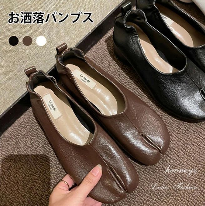 足袋パンプス先割れシューズ 靴 光沢感 バレエシューズ ローヒール レディース 足袋シューズ フラットシューズ