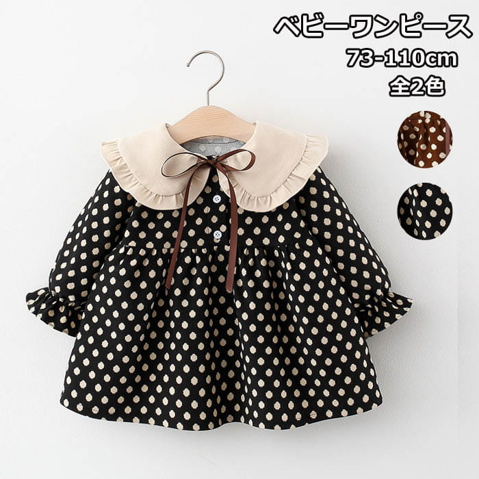 ワンピース ベビー 入園式 子供服 女の子 卒園式 73 80 90 100 110 フォーマル かわいい 水玉 春秋 丸襟 リボン 綿 子ども 春 キッズ 長袖 おしゃれ ベビー服 プレゼン 可愛い
