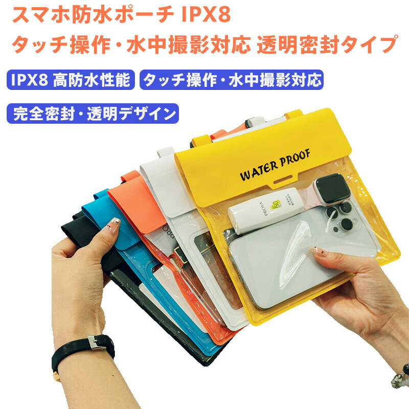 防水スマホポーチ IPX8 完全防水 大容量 タッチ操作対応 水中撮影可能 スマートフォン防水ケース 海水浴 プール 水遊び キャンプ アウトドア用 透明ポーチ 首掛け兼用 ママ必携 子供と 斜め掛け