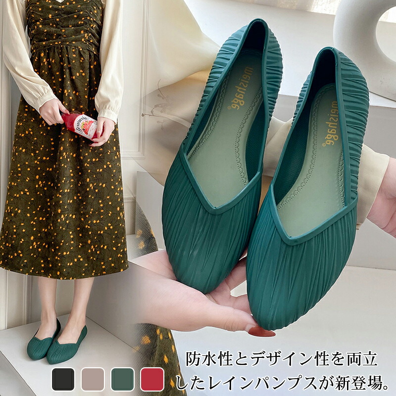 レインシューズ 防水シューズ レディース スリッポン 大雨 梅雨 生活防水 パンプス フラット 晴雨兼用