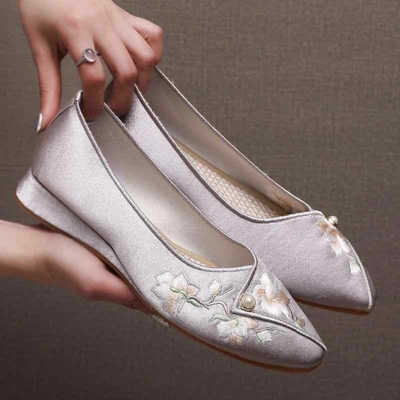 布製パンプス レディース 軽量 滑り止め 耐摩耗性 ポインテッドトゥ フラットヒール 刺繍 中国風 レトロ 上品 エレガント コットン スリッポン 春夏 チャイナドレス 花柄