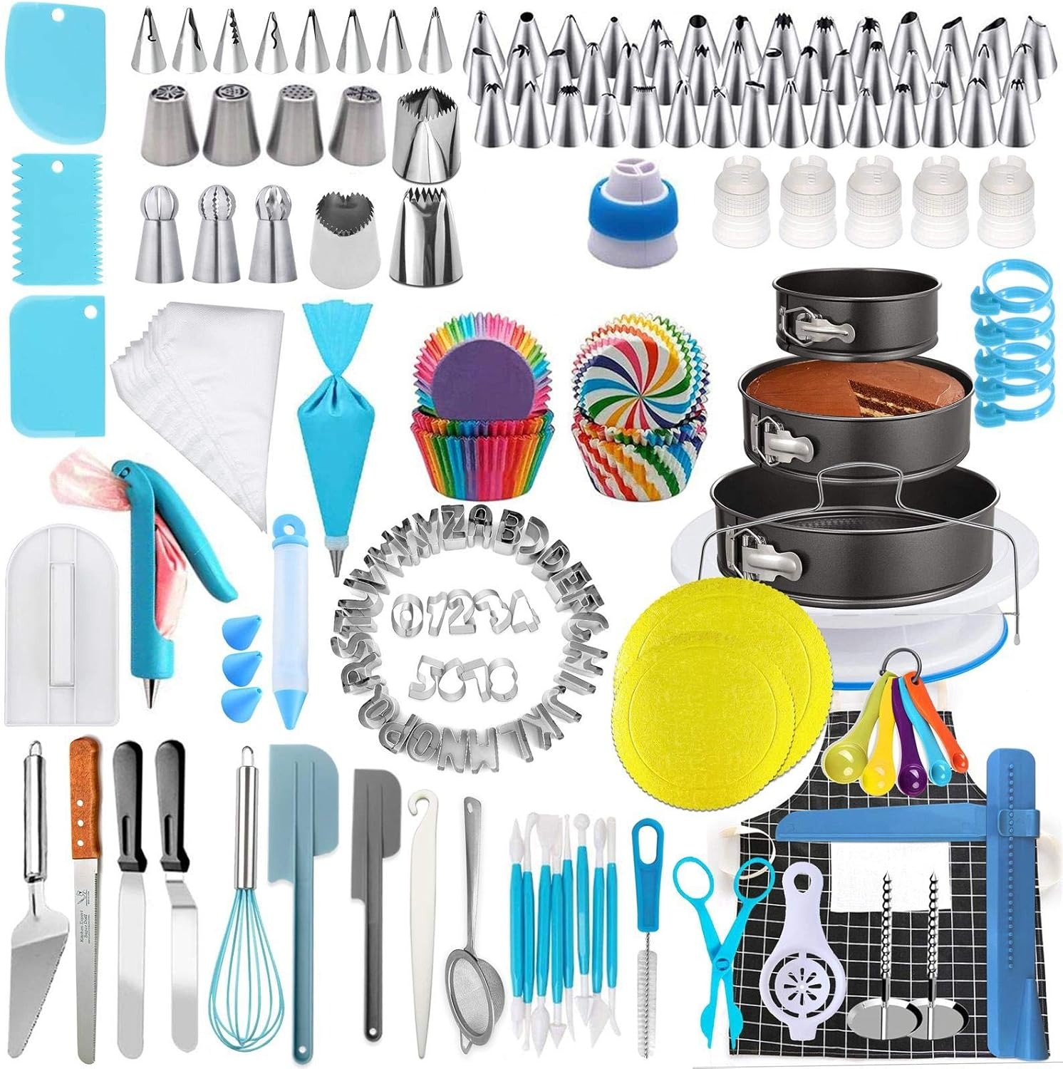 ケーキデコレーションキット ケーキ飾る 458点セット ケーキ手作り工具 ケーキ回転台 絞り口金 花型作成器 スクレーパー 取り替えキャップ お菓子作り道具 製菓道具セット お菓子作り回転台 絞り袋