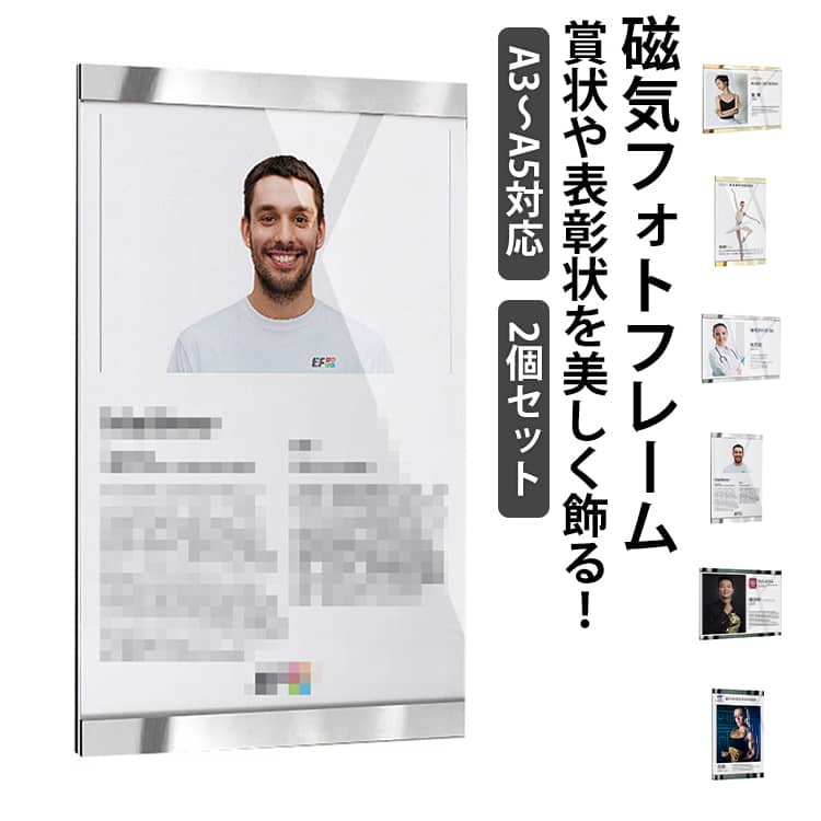 アクリルフレーム 磁気 額縁 賞状入れ おしゃれ A3 北欧 モダン クリア 壁掛け 賞状用 A4 2個セット 透明 マグネット フォトフレーム 縦型 アートフレーム ディスプレイフ 横型