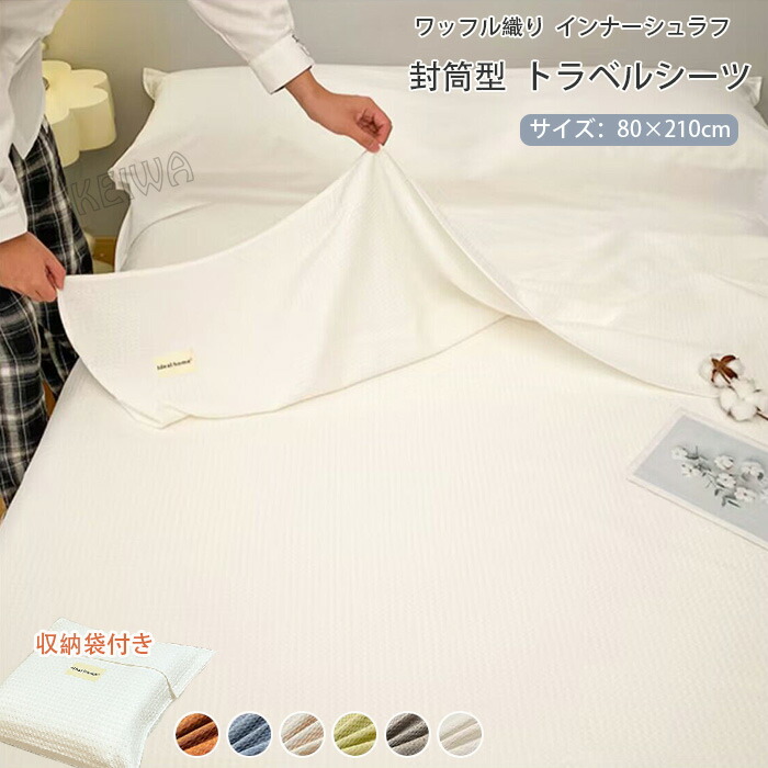 インナーシュラフ 寝袋 ワッフル織り 綿100% インナーシーツ 封筒型 収納袋付き コンパクト シーツ トラベルシーツ 肌触り良い 通気性 洗える 防災グッズ キャンプ用品 旅行 アウトドア 緊急時