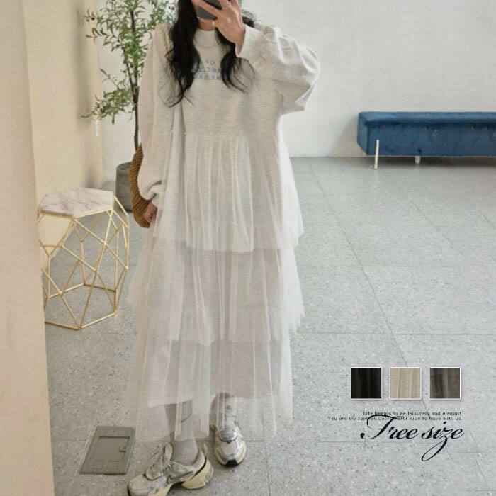 チュール ワンピース レディース 春 秋 冬 長袖 ロング丈 きれいめ かわいい ティアードワンピース 秋冬 ロング丈ワンピー aラインワンピー 大人 ファッション シンプ aライン