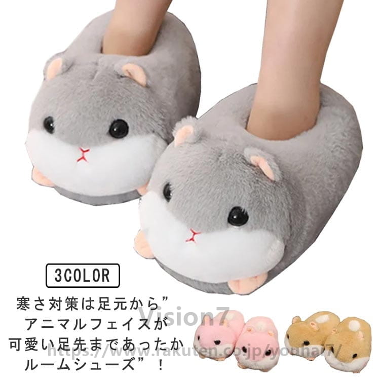 ルームシューズ ハムスター スリッパ かかと付き もこもこ ふわふわ ファー ブーツ型 動物 アニマル かわいい おもしろ ルームブーツ 冬 あったか 防寒 保温 暖かい 室内履き 軽 足元