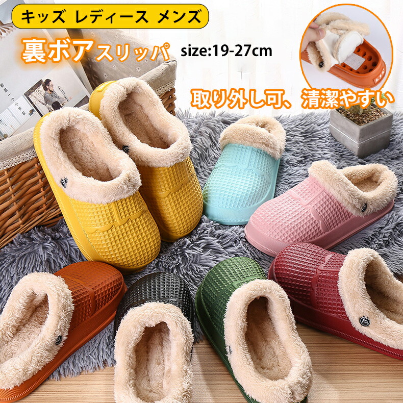 オシャレなデザインのスリッパ、もこもこ暖か 大きい ボア付き 冬用 防寒 あったか ファー付き サボシューズ クロッグシューズ サンダル 冷え対策 キッズ オフィス 秋冬ルームスリッパ