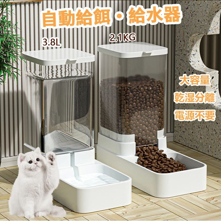 電源不要 ペット用の給水機 大容量 水飲み器 餌入れ エサやり セット 自動給水器 自動給餌器 犬猫お留守番対応