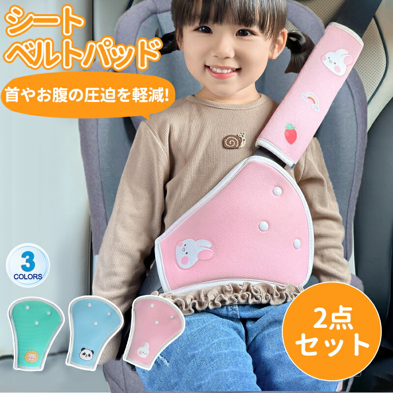 シートベルトカバー シートベルトパッド 2点セット 首 お腹 腹部 サポーター セーフティパッド シートベルトクッション ドライブ キッズ 幼児 ヘルパークッション カー用品