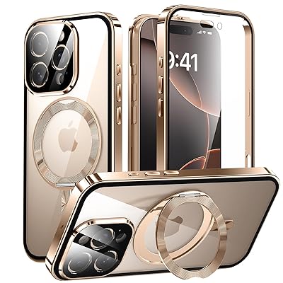 iPhone 16 Pro Max 用 両面 MagSafe対応 ケース アイフォン16プロマックス アルミバンパー 360°回転スタンド スマホケース 全面保護 カバー カ アイホン16プロマックス