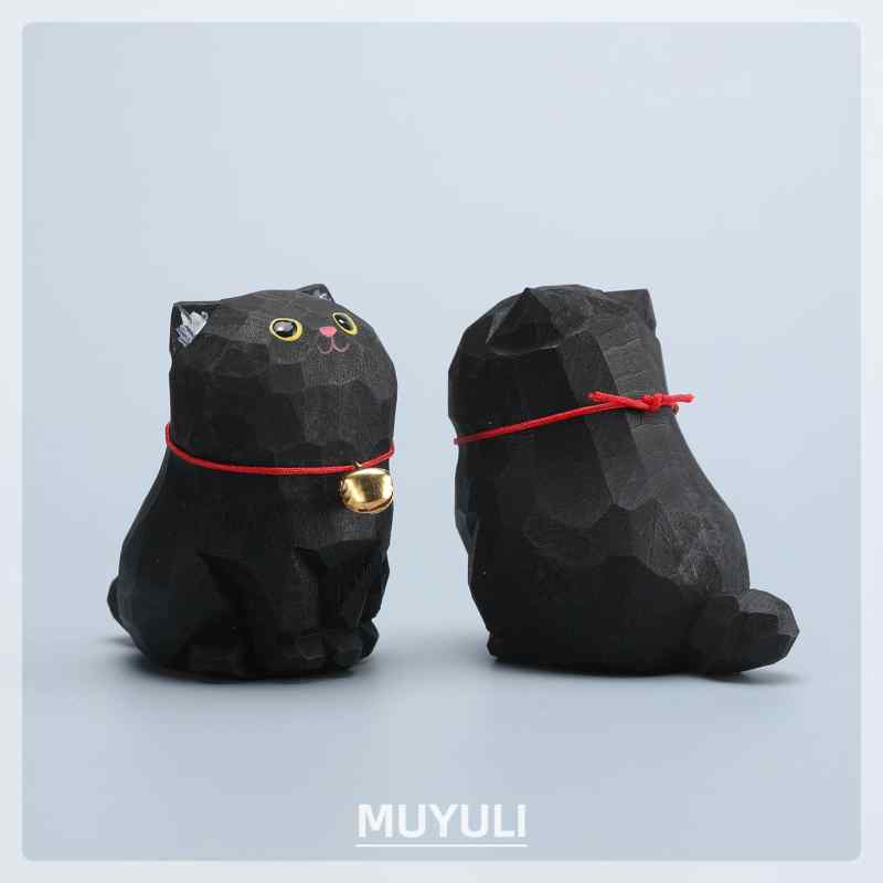 木製置物 猫 動物 彫刻 木彫り 小さい 飾り 卓上 オフィス デスクデコ オーナメント ギフト 猫好き 開運 かわいい 北欧風 ぬくもり ミニチュア