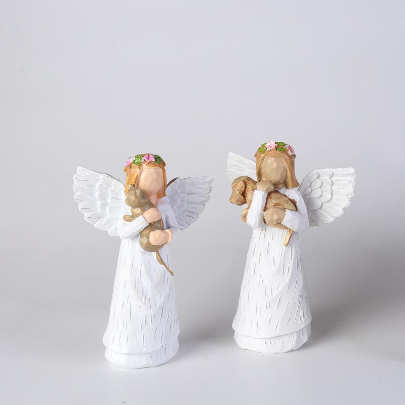 置物 犬を抱く天使 ユニークなデザイン かわいい 欧米風 合成樹脂製 工芸品 レジン オブジェ インテリア 卓上飾り 玄関 リビング 贈り物 ギフト 記念品 部屋のアクセント